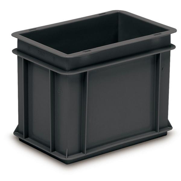 RAKO Euro containers made of electrostatically conductive polypropylene, stackable.