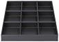 Preview: The image shows a black, rectangular storage box with twelve equal-sized compartments. The compartments are arranged in three rows and four columns. The box has a flat, stable shape.