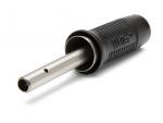 The image shows a tool handle with a metallic attachment. The handle has a rubberized, non-slip surface and tapers towards the end. The attachment is pointed and flat.