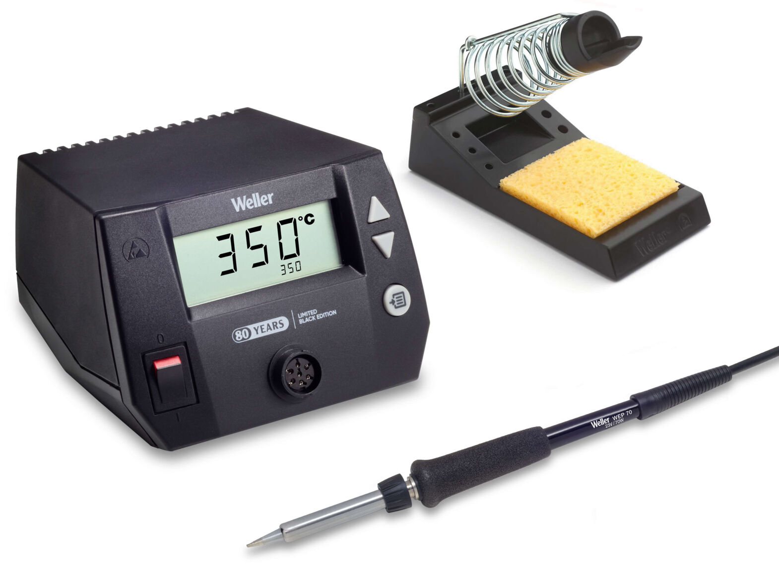 The WE 1010 soldering station is currently available in two versions: as a blue/black soldering station and as a "Black Edition" soldering station, which is being offered in a limited edition to mark Weller's 80th anniversary.