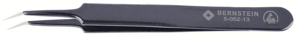The stainless steel SMD tweezers from Bernstein have anti-magnetic, non-reflective, rust-free and acid-resistant properties. They are ESD-safe and suitable for use in electrostatically protected areas. The tweezers are used in SMD/THT technology, for gripping parts and components mini MELFs, diodes, resistors or simply for holding wires.