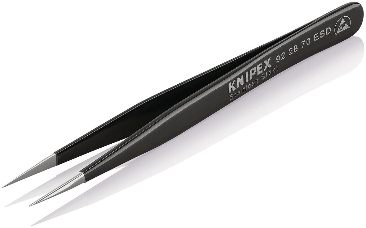 KNIPEX ESD precision tweezers are characterized by their high precision and fineness. Made from high-quality stainless steel, they offer temperature and corrosion resistance as well as anti-magnetic properties to prevent electromagnetic damage. The tweezers are ESD-safe and comply with the ESD standard DIN 61340-5-1. The tweezers are suitable for use in electrostatically protected areas.