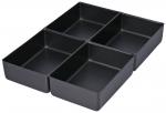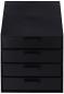 Preview: Das Bild zeigt einen schwarzen Schubladenschrank mit vier gleichen Schubladen, die übereinander gestapelt sind. Jede Schublade hat einen Griff und ist rechteckig. Der Schrank wirkt modern und funktional.
