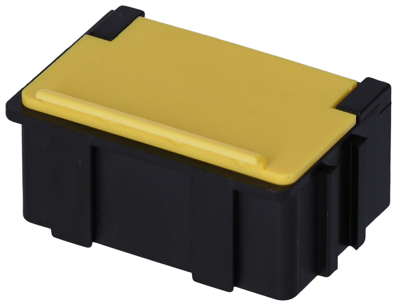 Preview: Das Bild zeigt einen kleinen, rechteckigen Kasten mit einer gelben Oberseite und schwarzem Unterteil. Der Kasten hat angedeutete Rillen an den Seiten und eine leicht abgerundete Form oben.