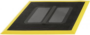 Das Bild zeigt eine rechteckige Matte mit einer gelben Umrandung. In der Mitte befinden sich zwei rechteckige schwarze Bereiche, die eine strukturierte Oberfläche haben.