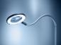 Preview: Die Abbildung zeigt eine flexible Schreibtischlampe mit einem runden, vergrößernden Licht. Der Hals der Lampe ist biegsam und sie steht auf einem stabilen, schwarzen Fuß. Der Hintergrund ist in sanften Grautönen.