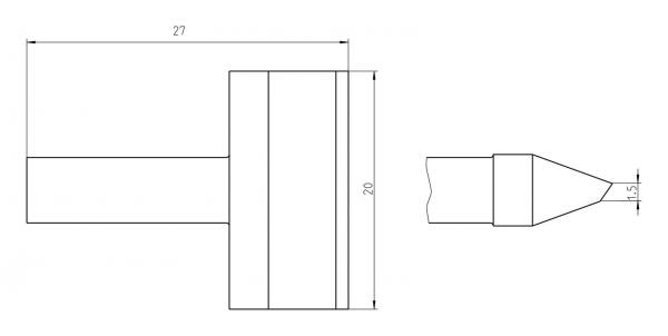 Preview: Das Bild zeigt eine technische Zeichnung eines Bauteils. Es hat eine zylindrische Form mit einem kürzeren, spitz zulaufenden Ende. Maße sind angegeben: 27 mm und 20 mm hoch.