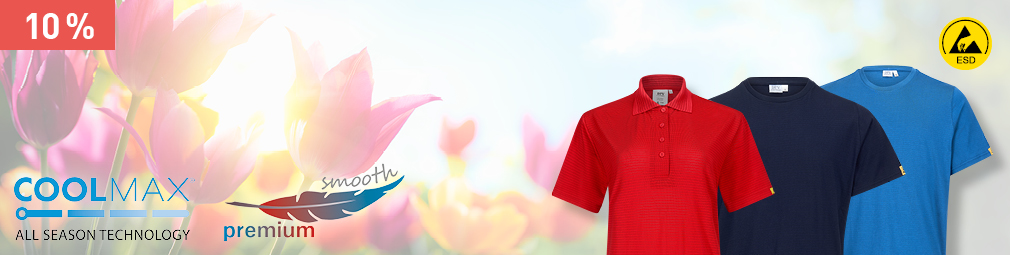 Entwickelt, um einen Hitzestau zwischen Körper und Kleidung zu vermeiden, steht COOLMAX ® ALL SEASON für eine Familie von Polyesterfasern. Diese Technologie ermöglicht es, Kleidung zu produzieren, die dauerhaft Feuchtigkeit ableiten kann und somit einen zuverlässigen Temperaturausgleich bietet. Die COOLMAX ® ALL SEASON Fasern transportieren Feuchtigkeit von der Haut weg zur Oberfläche des atmungsaktiven Gewebes, wo sie sich schnell verflüchtigt und ein kühles, trockenes und angenehmes Temperaturgefühl hinterlässt. Für ESD-geschützte Arbeitsbereiche bietet die COOLMAX ® Oberbekleidung für Damen und Herren mit hoher elektrostatischer Ableitfähigkeit in bewährter Qualität und dem Tragegefühl von COOLMAX ® ALL SEASON: weich, leicht und atmungsaktiv – das ganze Jahr über.