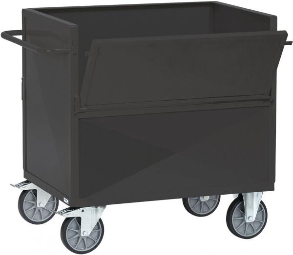 ESD compliant steel sheet box wagon for the electronics industry, ideal as a transport, material and waste wagon.